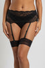 Black Lace Suspender Belt with Floral Pattern & Metal Clips - UK
