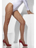 100% Nylon White opaque stockings with lace garter tops trimmed with a large black satin bow. Could be used as stay up but we would recommend you using a suspender belt.